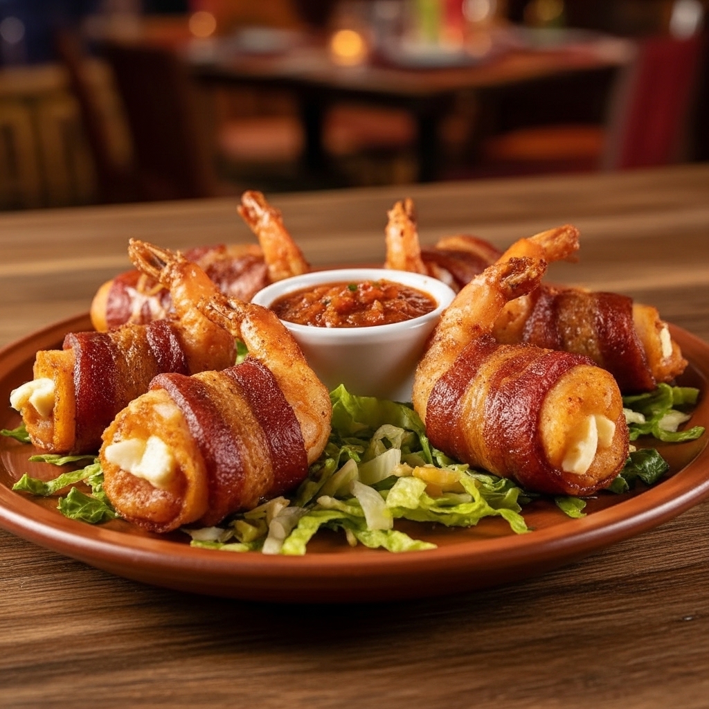 Bacon wrapped gulf shrimp stuffed with queso blanco and jalapeño. Served with chipotle salsa.